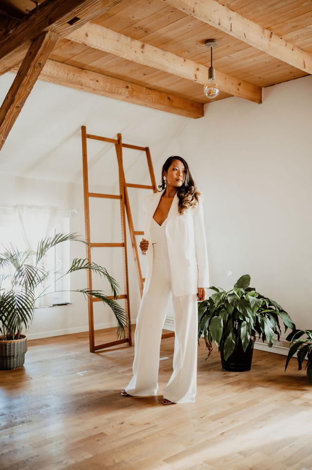 High-Waisted Brauthose mit engen Oberschenkel und ausgestellten Saum. Super kombinierbar mit den Oberteilen "Vepita" und "Sunpatiens" und dem Blazer "Karoo".