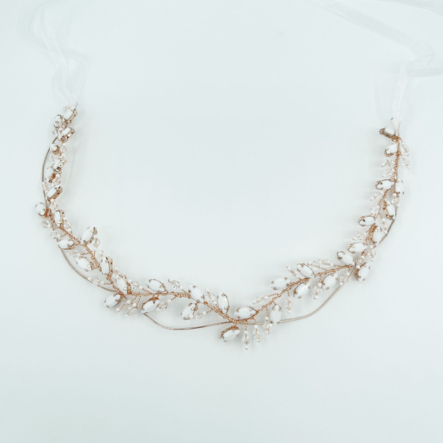 Für romantische Boho-Styles. Haarband aus rosegoldenen geschwungenem Metall mit weissen ovalen Steinen.